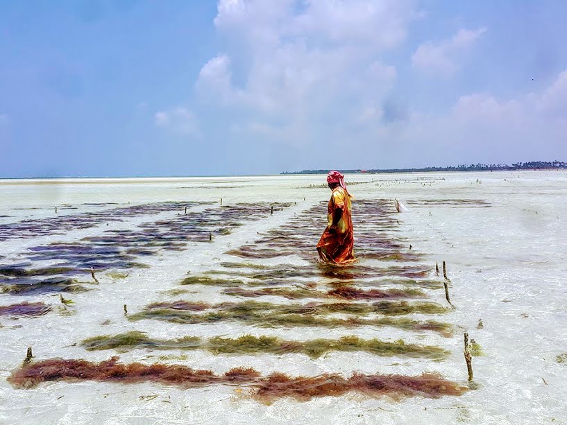 Seetangernte bei Ebbe